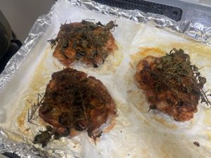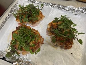 香草をたっぷりのせて、200℃のオーブンで15分。