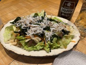 シラスがてんこ盛りのサラダ、これでハーフサイズです。
