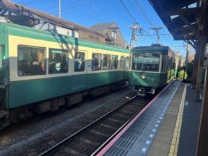 江ノ電からは、伊豆半島、伊豆大島、富士山がはっきり見えました。