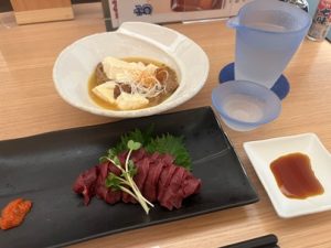 Senkoma special junmai sake, Aizu horse sashimi and horses tew.