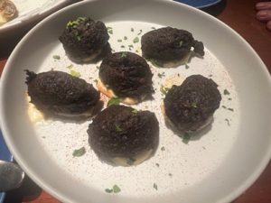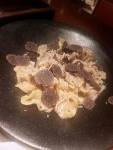 2本目は、ウンブリア産のサグランティーノ、サンジョベーゼとメルローのブレンド。濃厚でしっかりとしたスタイルですが、サラリと上品な口当たり。すいすい飲めてしまいます。トリュフがいっぱいのパスタと絶妙なマリアージュ。