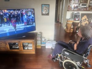 We had been cheering together for many years, so she seemed to understand it, so she watched TV for about an hour with her eyes open.