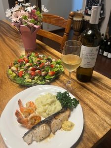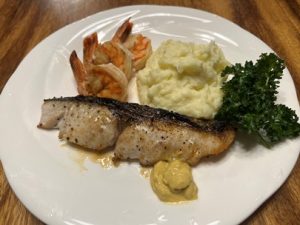 Grilled Sawara and Sauteed Shrimp with Mashed Potatoes
