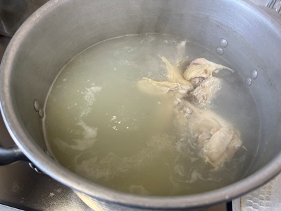 昨日、ふと、出汁も前の日から仕込んだ方が良いのではと思い、夕方から鶏ガラ2羽を炊きました。